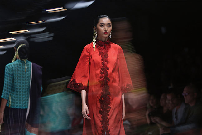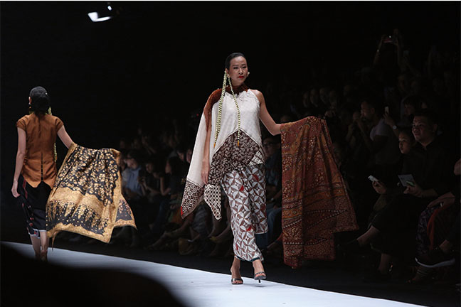 Peragaan busana yang menampilkan banyak kombinasi beragam motif ini dibuka dengan tarian kontemporer yang dibalut oleh cahaya merah kelam yang menggambarkan emosi jiwa terdalam. Pergantian nuansa begitu terasa saat fashion show dimulai dengan koleksi busana berwarna cerah dan cantik dengan kain yang melambai anggun.