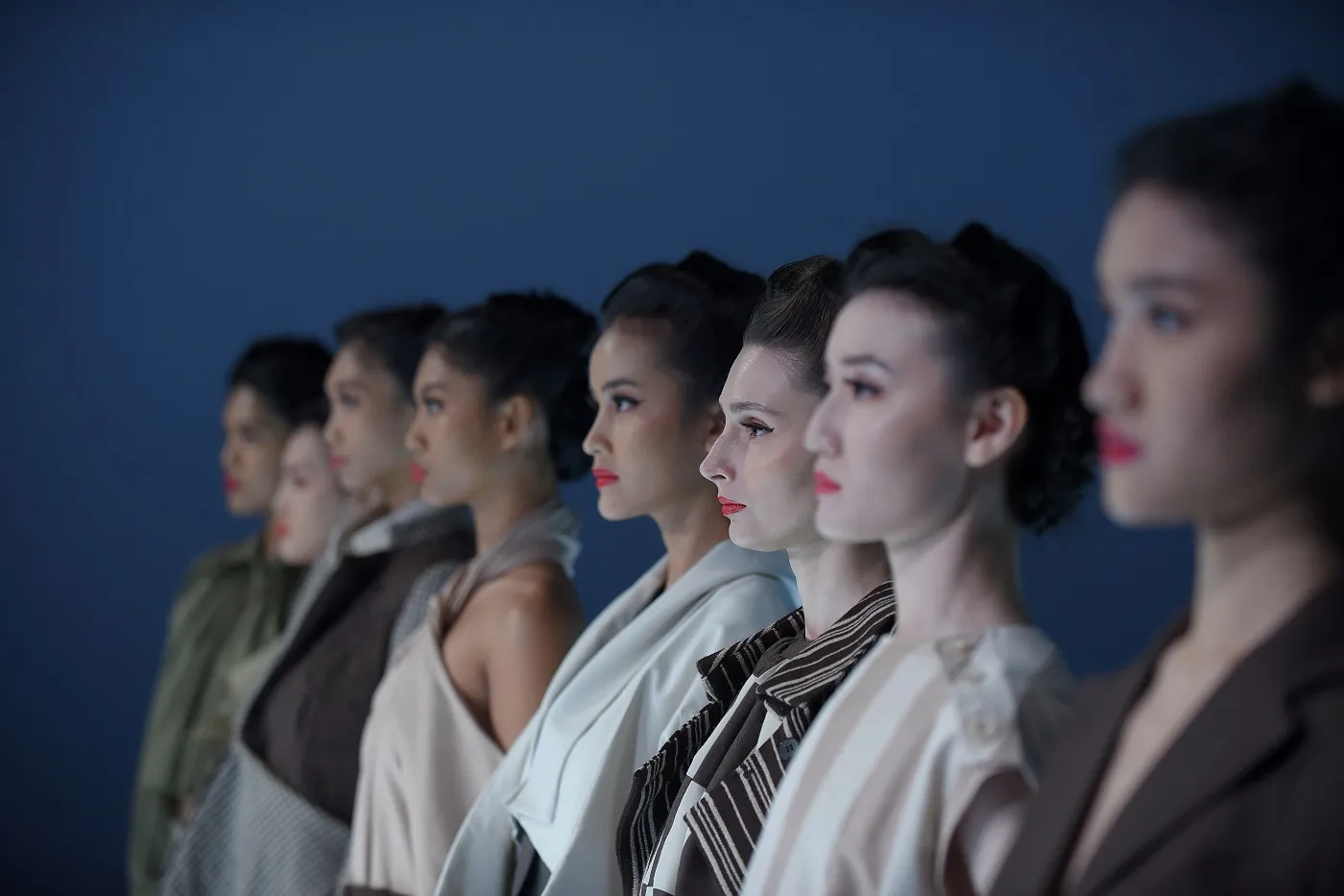 Begitu juga dengan tata rambut. Untuk model perempuan, gaya yang digunakan adalah hairdo natural, seperti ponytail, updo, braid, atau digerai dengan blowout dan sleek style. Namun dalam setiap style, tetap ada aksen yang menjadi ciri khas desainer. Contohnya, Amotsyamsurimuda yang menggunakan mutiara pada rambut pada model prianya.