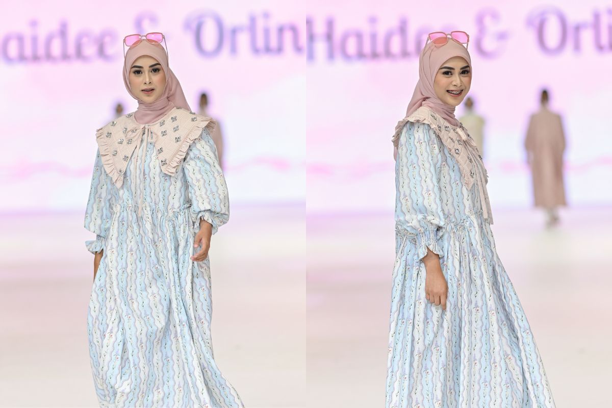 Jenama mode yang fokus pada ranah modestwear, IKYK, menghadirkan karya terbarunya pada show “Philips presents"Power Up Your Style". Pada koleksinya kali ini, IKYK menampilkan berbagai siluet lebar dan garis desain yang bersih dengan warna-warna cerah. Salah satunya, setelan berwarna powder blue yang memiliki potongan oversized, tapi rapi dan tetap trendi. Cocok untuk aktivitas harian yang dinamis.
