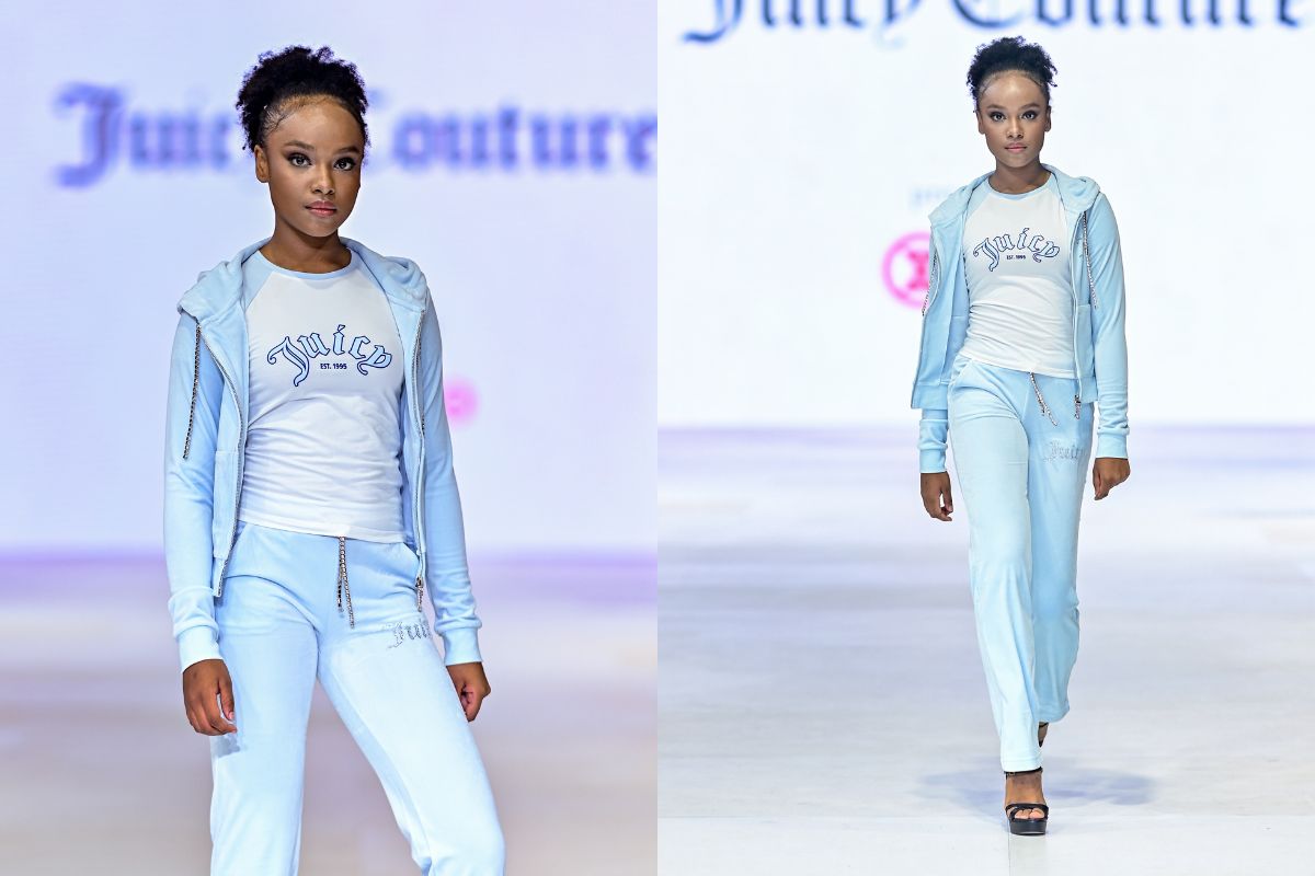 Pada show “Pondok Indah Mall presents Day to Night", jenama mode internasional, Juicy Couture menghadirkan sederet koleksi athleisure dengan gaya ala tahun 2000-an. Ragam looks yang ditampilkan menawarkan pilihan untuk melengkapi aktivitas harian yang aktif. Warna powder blue hadir pada setelan celana dan jaket yang sporty. Padukan dengan t-shirt berwarna putih yang akan menghadirkan kesan clean.