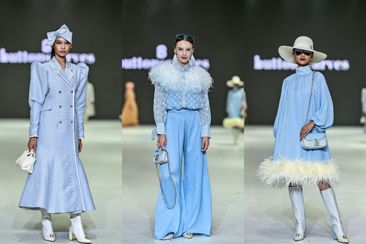 Jenama mode terkemuka, Buttonscarves, tidak ketinggalan menghadirkan warna powder blue pada koleksi terbarunya “The Fiery Passion”, yang tampil pada show “Modinity Group presents Buttonscarves and Benang Jarum”.