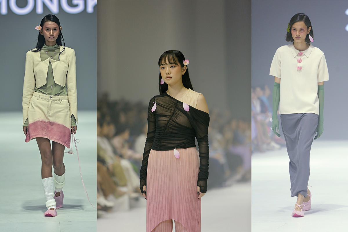Warna-warna yang digunakan juga berfokus pada color palette kolam teratai. Sebut saja mulai dari baby pink, hijau daun, abu-abu, dan cream. Berbagai nuansa ini diaplikasikan pada material kain jenis stretch, sheer, hingga tekstur pleats untuk mendeskripsikan ulir serat daun.