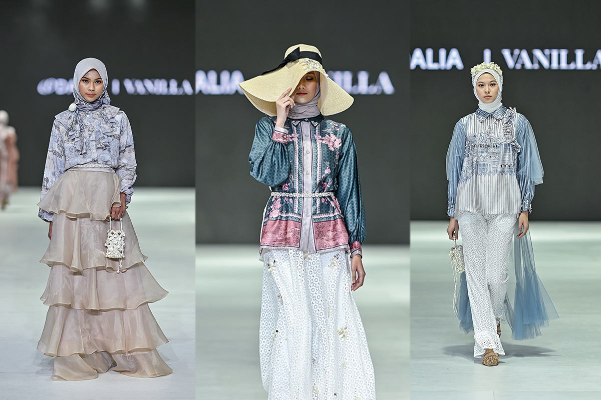 Terdapat banyak rok ringan dengan atasan matching full print, rok tumpuk yang dinamis dan anggun, dan permainan aksen kain sheer tulle yang menghadirkan permainan tekstur bahan menarik. Tetap pada prinsip desain modest, Vanilla Hijab memastikan tiap pakaian tidak membentuk tubuh namun tetap dapat memberikan kesan flattering bagi pemakainya.