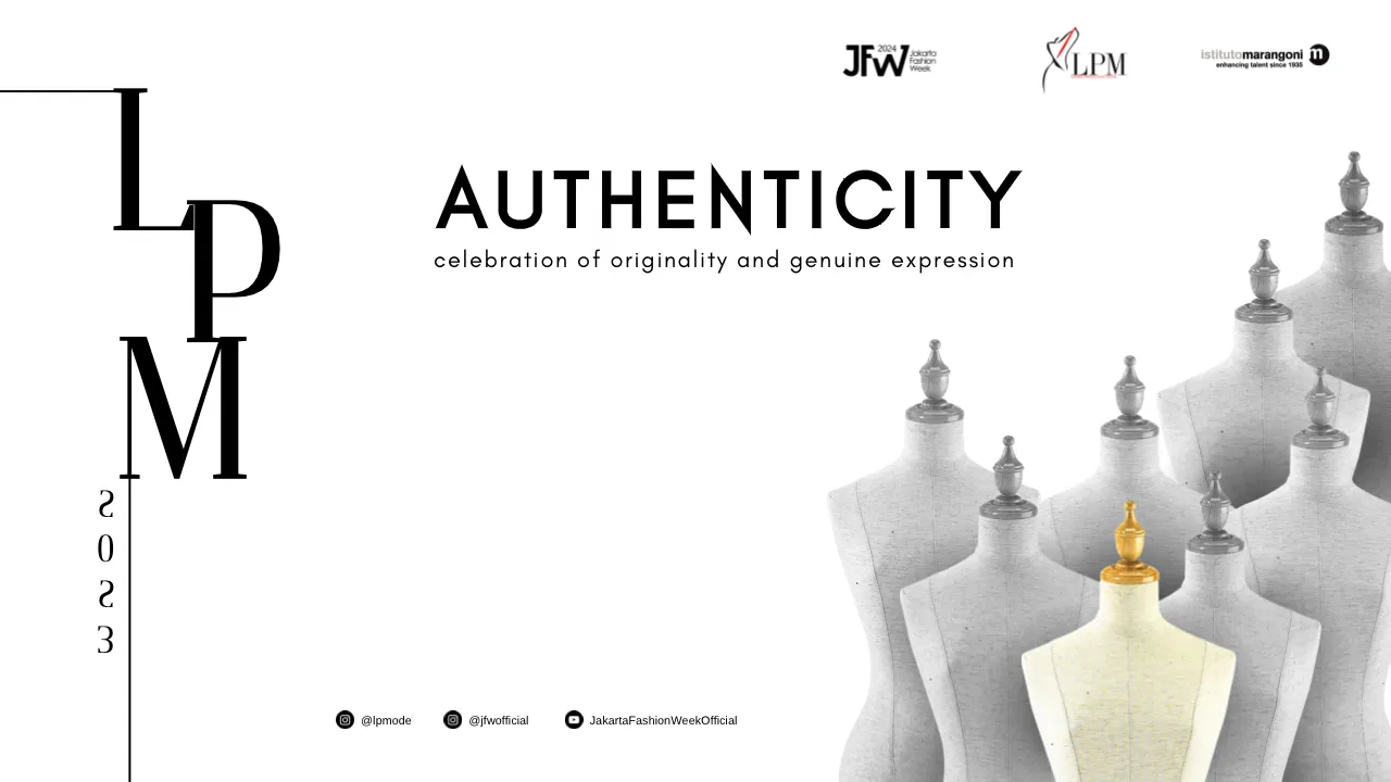 Tahun ini, Lomba Perancang Mode hadir kembali dengan tema utama ‘AUTHENTICITY’ sebagai upaya mengeluarkan energi kreatif para desainer muda dengan menyediakan platform bagi mereka untuk mengekspresikan keaslian dan DNA desain yang kuat. Didukung oleh Instituto Marangoni, LPM 2023 menantang para peserta untuk menggali lebih jauh tafsiran gaya yang orisinil dan merancang pakaian yang mencerminkan diri mereka yang sebenarnya, melalui eksplorasi perspektif baru, bereksperimen dengan material, teknik, serta siluet yang tidak konvensional.