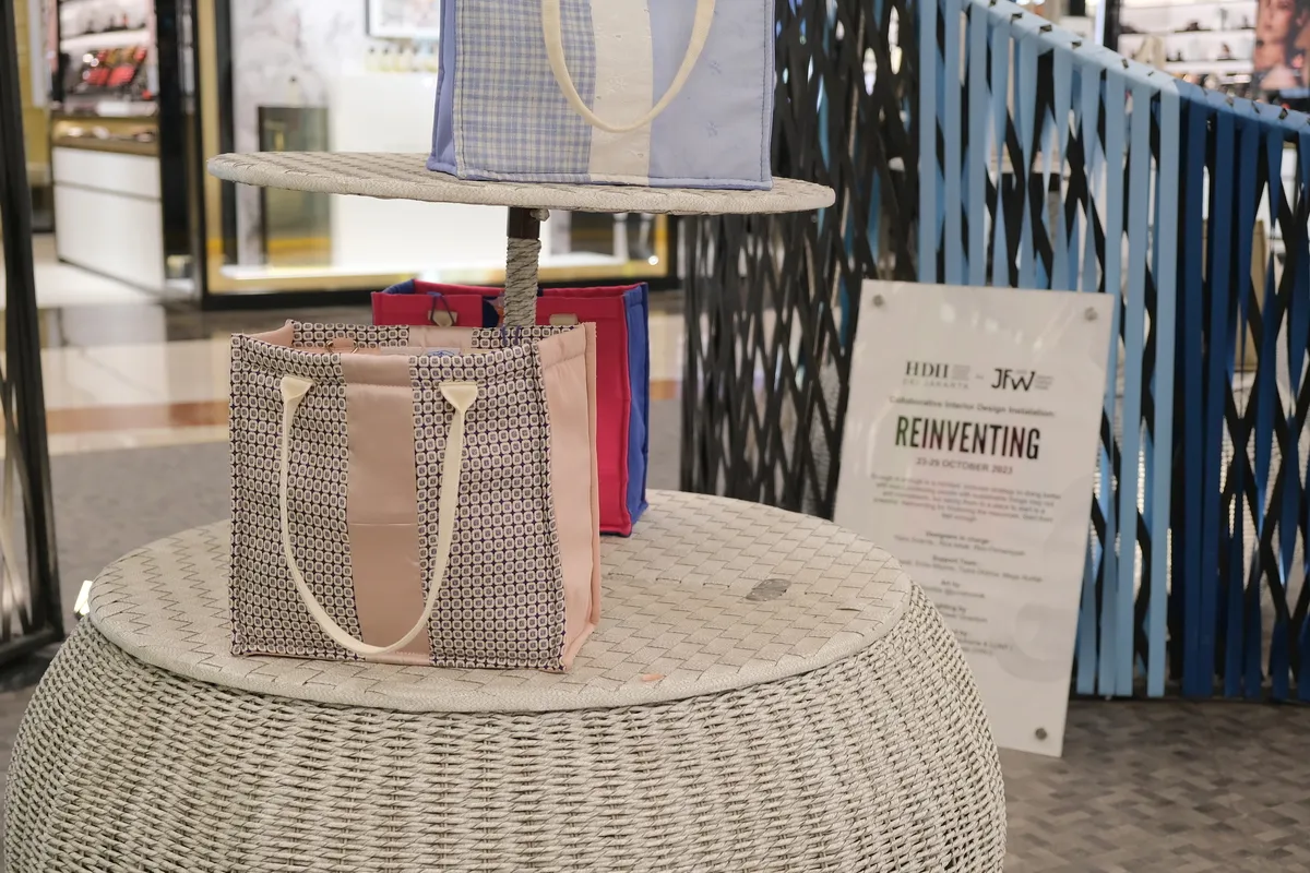 Khusus JFW 2024, instalasi Totes of Hope merupakan hasil kolaborasi dengan HDII Jakarta dan penataannya dibantu oleh Visual Merchandising ID (VMID).