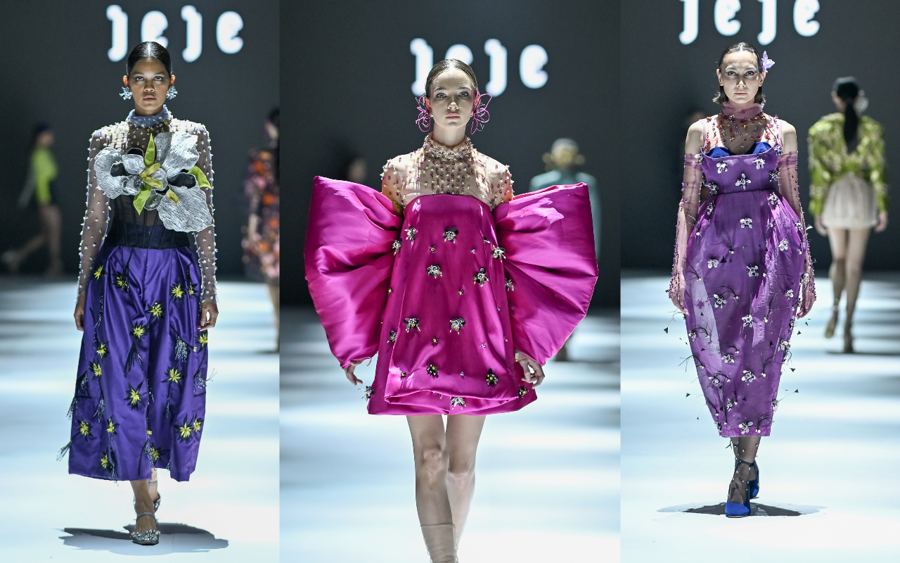 Koleksi perdana Studio Jeje di panggung DEWI Fashion Knights mengangkat tema Kembang Tujuh Rupa – Perayaan Penuh Sukacita, terinspirasi dari tradisi proses penyucian menggunakan air bunga tujuh rupa dalam budaya Jawa. Pengaruh tradisi ini kemudian dicairkan dan diimajinasikan kembali oleh direktur kreatif dari Studio Jeje, Angelita Nurhadi, sesuai dengan arah dan gaya desain sang perancang.