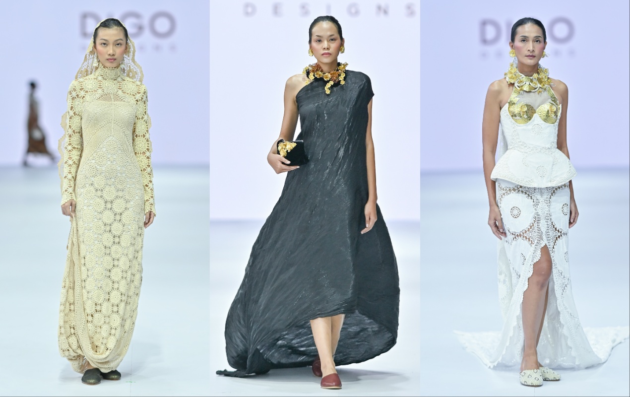 Untuk Jakarta Fashion Week tahun ini, desainer Yonatan Digo Permadi dari DIGO Design membawa koleksi Faithfulness yang terinspirasi dari kesetiaan anjingnya dan kebersamaan yang mereka jalani sehari-hari. Ia mewujudkan inspirasi ini menjadi busana-busana pernikahan yang tak hanya berupa gaun. Tak lupa, ia menerapkan konsep sustainable yang menjadi ciri khas jenamanya, dengan menggunakan sisa-sisa kain dari produksi di studionya lalu dikombinasikan dengan taplak rajutan untuk desain busana yang unik dan estetik.
