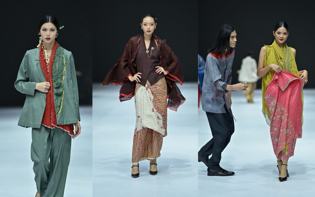 Sementara itu, BIN House—label legendaris yang telah berpuluh tahun mengangkat keindahan wastra Nusantara membawa kehangatan dan keceriaan melalui koleksi bertajuk “Sekapur Sirih”. Warna-warna cerah berpadu dalam potongan “tidak biasa” yang merayakan keberanian berekspresi.