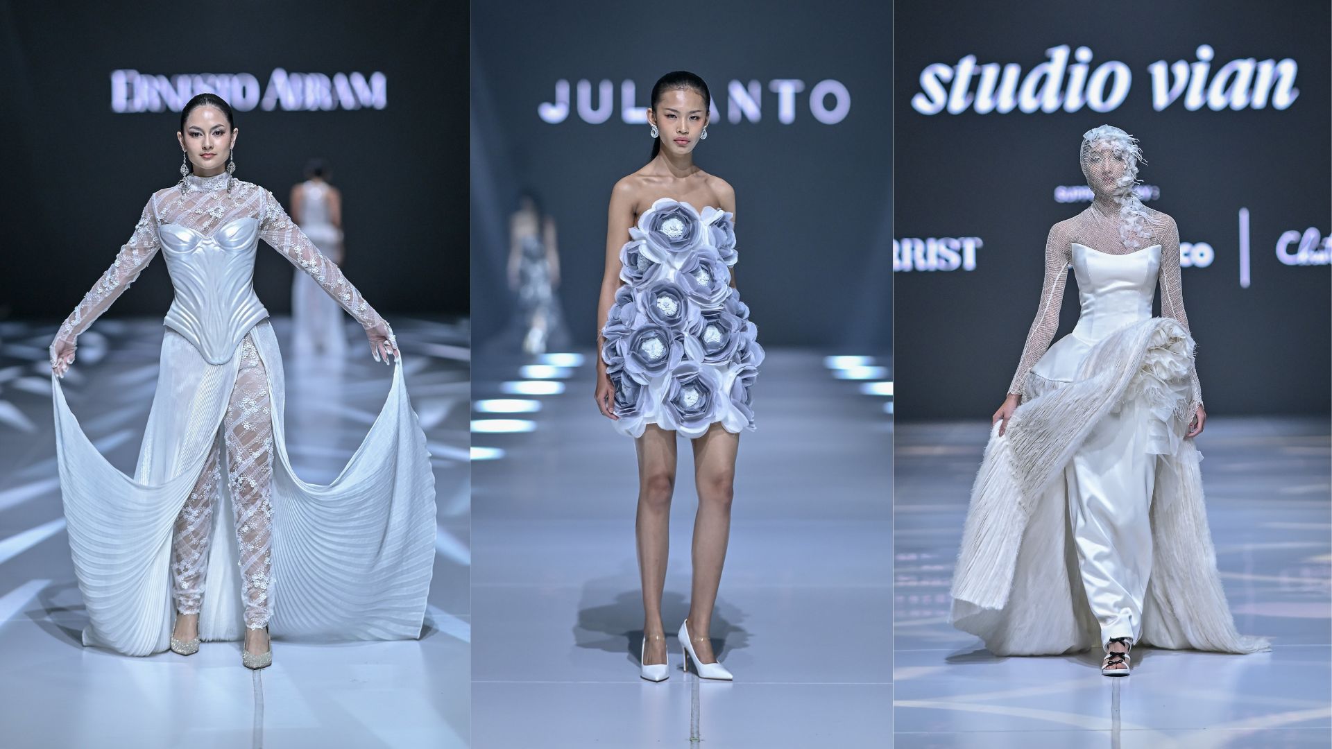 Sementara itu, Ernesto Abram dengan memukau menutup fashion show dengan koleksi ‘Renewal Revolux’ yang merefleksikan perjalanan pembaruan diri. Melalui dominasi warna putih, dan perak, Ernesto menuturkan kisah tentang keinginan untuk berevolusi, sebuah metafora visual tentang bagaimana perubahan selalu lahir dari pergolakan dan keyakinan. Kemegahan dari berbagai long dress ditampilkan lewat struktur yang kuat dan kokoh, seperti dengan penggunaan korset. Mini dress ditampilkan dengan payet memeluk tubuh tapi kokoh dalam bentuk menyerupai armor.