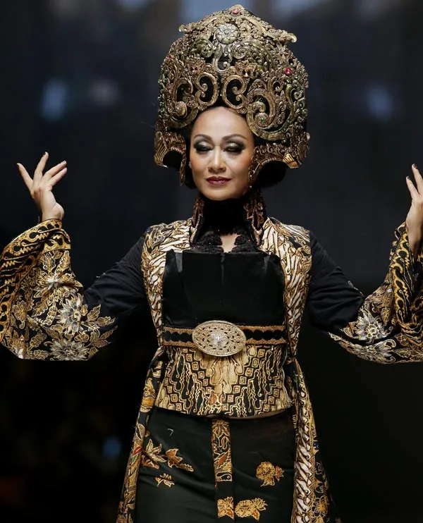 The fashion show opened with the silhouette of Kebaya Kartini with its traditional grip, then morphed into an artistic contemporary Kebaya. The variety of Kebaya collection with a long shape appears gracefully followed the body curves. Anne Avantie has combining lace with tulle transparent material paired with handmade batik. As an ornament, a sprinkling of sequins and embroidery looked so luxurious adorning the entire collection. Anne Avantie also creating batik into robes and luxury fluffy skirts.