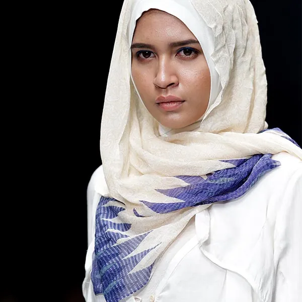 There are three prints used by Suzuki in 11 of 30 look presented, namely Sekar Kamulyan, chivalry and weaver; the print with the seize pattern he chooses for its traditional value, it fits the creative modern fashion. Consist in shades of blue; the prints were applied to scarf, midi dress, blouses, and skirts that are predominantly white and loose pieces. Although it looks very minimalist at the beginning of the show, Suzuki and Michelle offers an extend of ruffle, and asymmetrical cuts displayed onhalf of the show; a large marsupial shirt on the front and stacked A-line dress ruffle. Dynamic, but still casual.