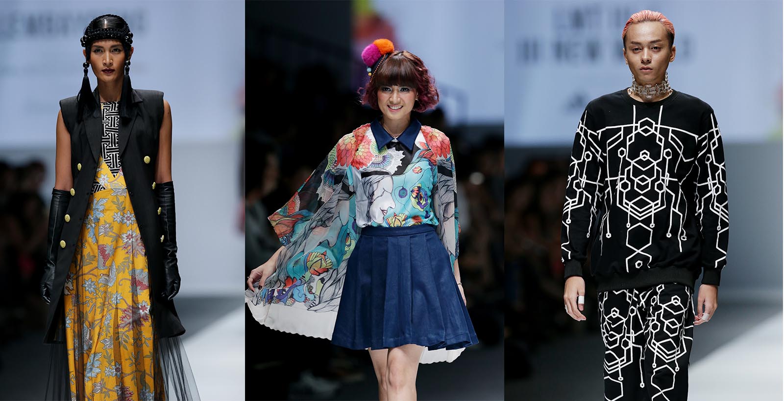 Memadukan batik pesisir dengan batik geometris menjadi tabrak corak yang manis adalah desain Ivan Gunawan kali ini. Presenter yang konsisten menekuni dunia fashion itu menghadirkan brand JAJAKA, dan koleksinya yang bertema “Lembayoeng” terinspirasi kecantikan wanita Indonesia, dengan dominasi warna jingga dan merah.