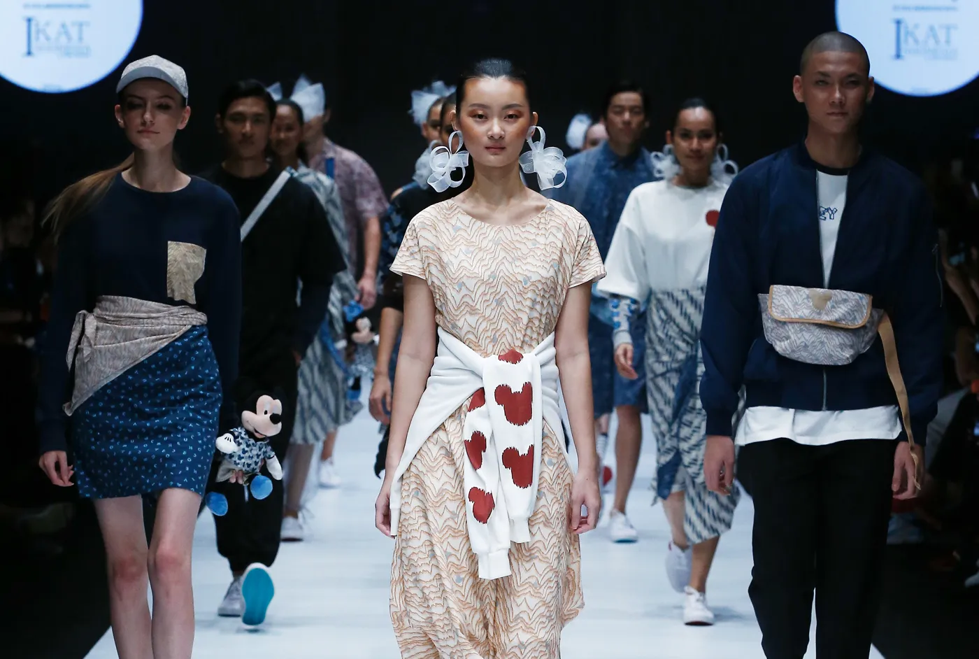 Fashion show kolaborasi dengan Disney ditutup dengan penampilan dari IKAT Indonesia. Koleksi ini menampilkan gabungan busana street wear dengan work wear yang fun dan easy. Siluet santai seperti dress A-line dan sweater serta perpaduan warna biru navy terlihat pada koleksi kolaborasi ini. Budaya Indonesia dan elemen Mickey Mouse dipadukan dengan mulus, terlihat dari print motif ikat yang ditimpa dengan ikon Mickey Mouse yang berukuran mini. (GAB/ZGY)