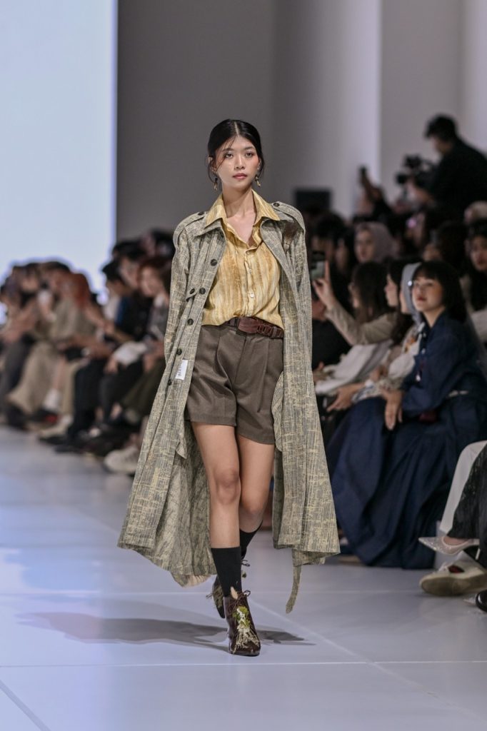 Sementara perancang Carolin Valentina mengangkat isu lingkungan dengan koleksinya yang bertajuk Molting Forest, mengambil inspirasi dari tekstur hutan Kalimantan yang ‘berubah kulit’ akibat perubahan iklim, dijelmakan dalam abstract pattern pada trench coats, mengelevasi penampilan tapi tetap smart-casual.